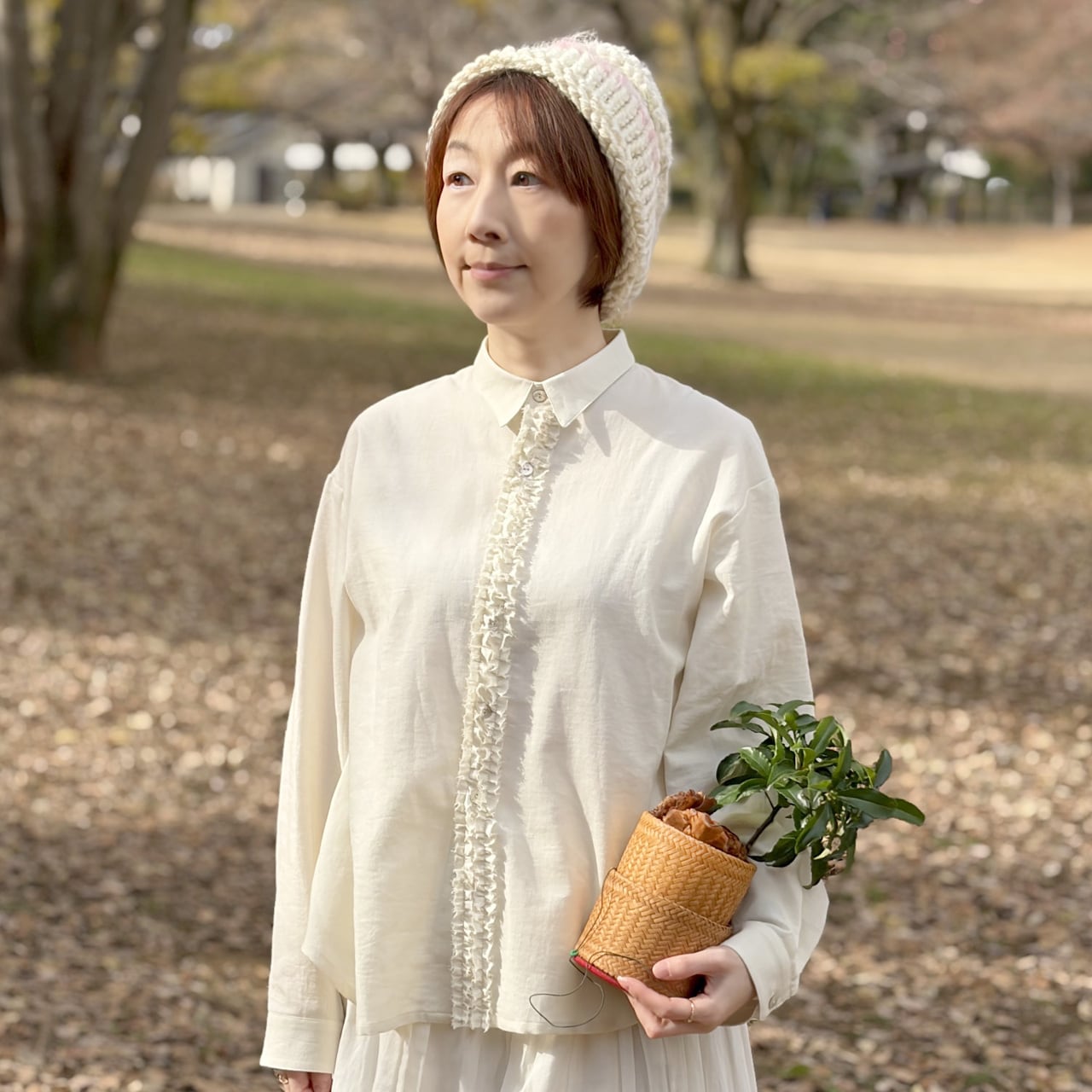柔らかく肌ざわりの良いオーガニックコットンビエラで、フラジールフリルシャツを作りました。