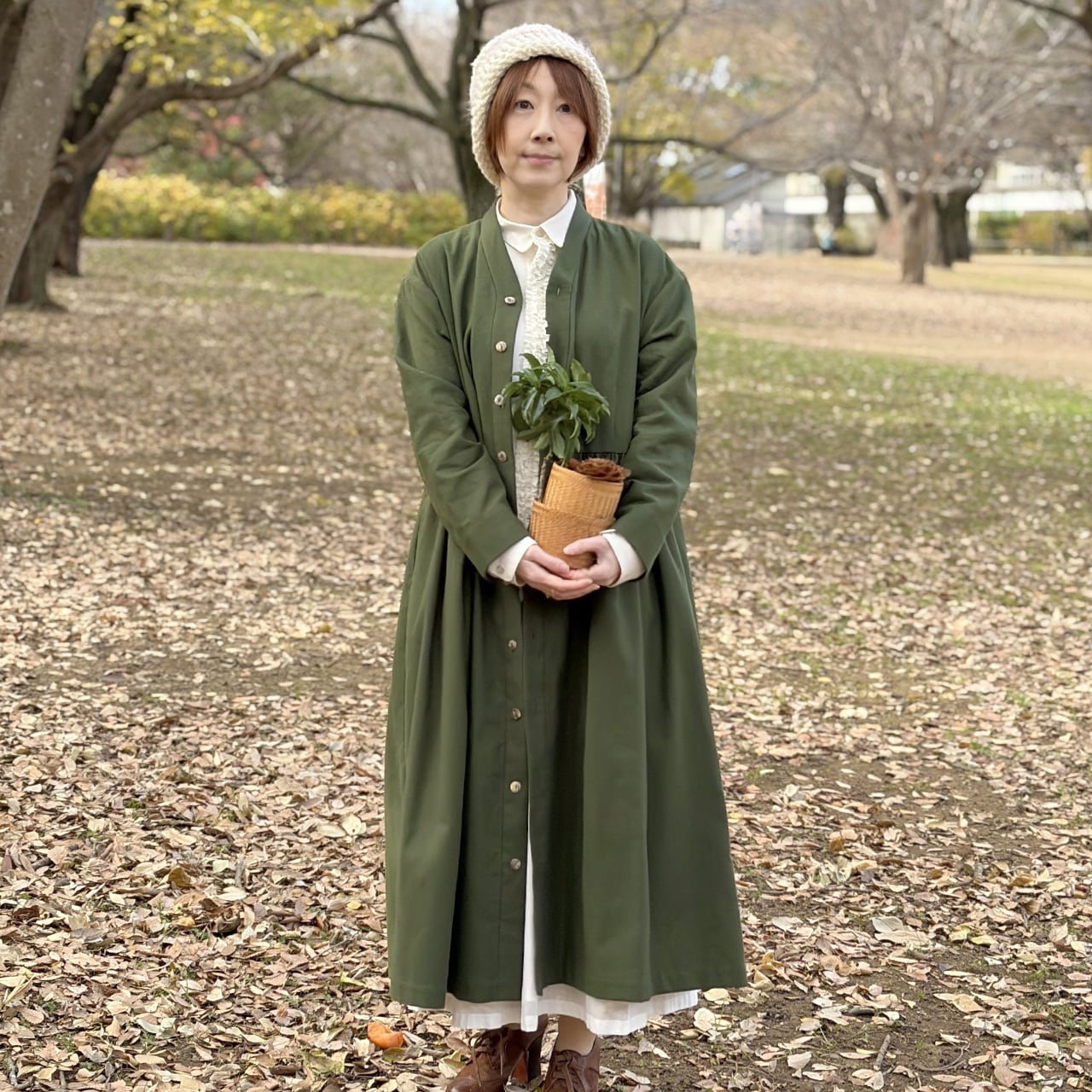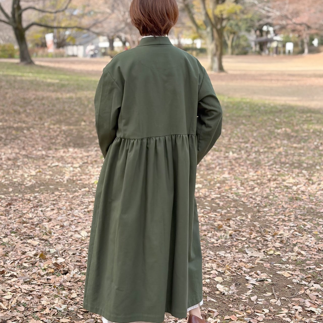 前を開けて、羽織コートとしても着ていただけるガウンコートワンピースは、秋から春まで活躍いたします。