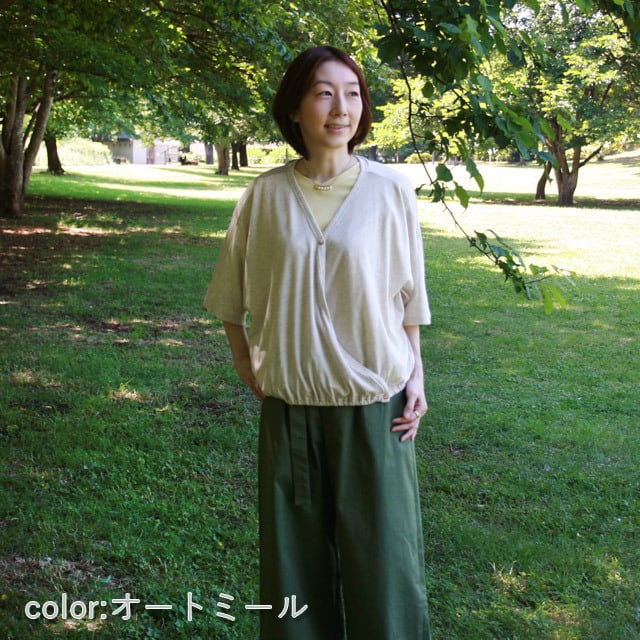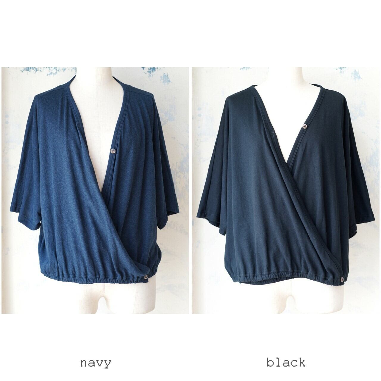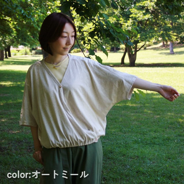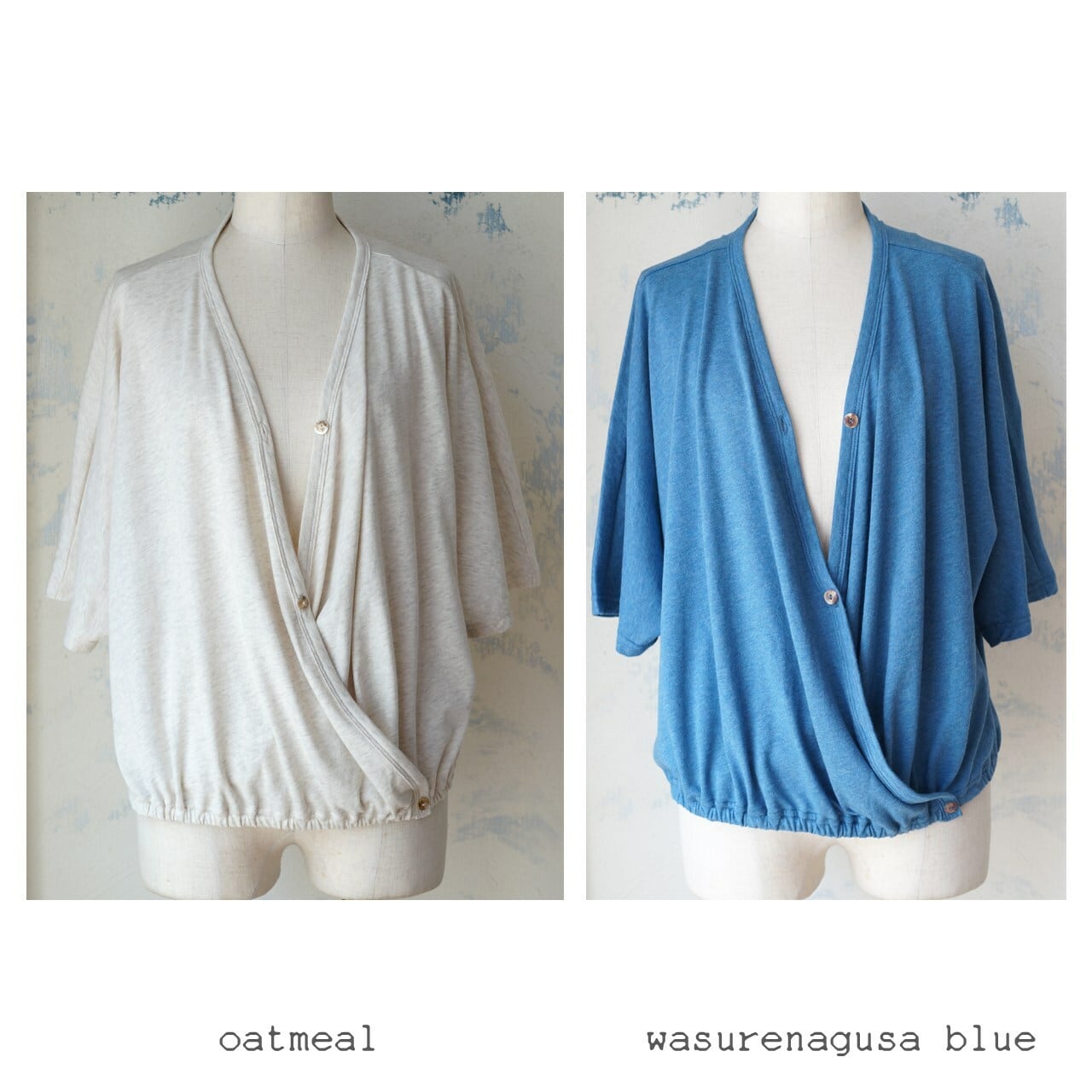 オーガニックコットンのソフトな天竺で、カシュクールカーディを作りました。