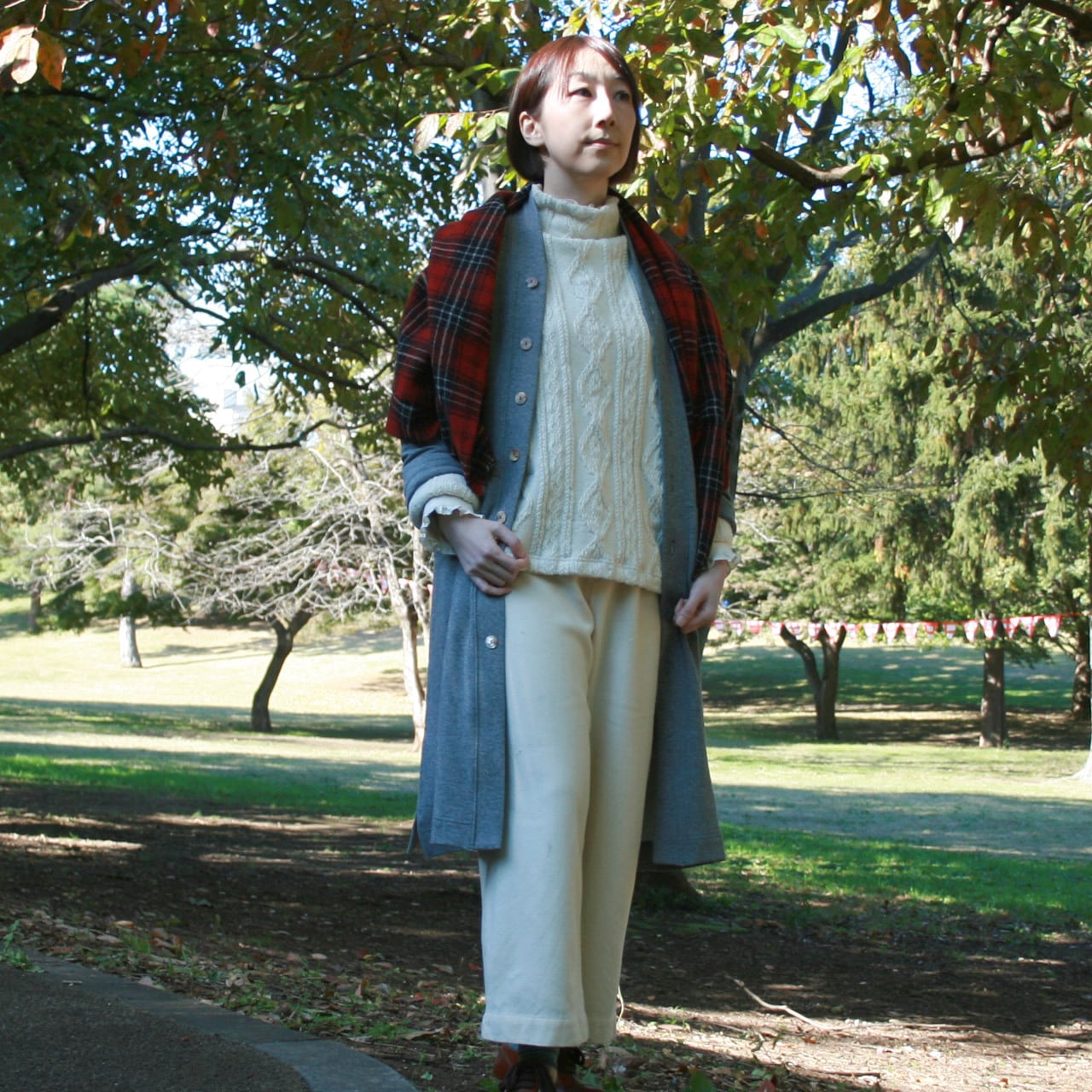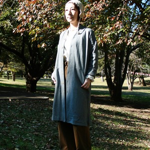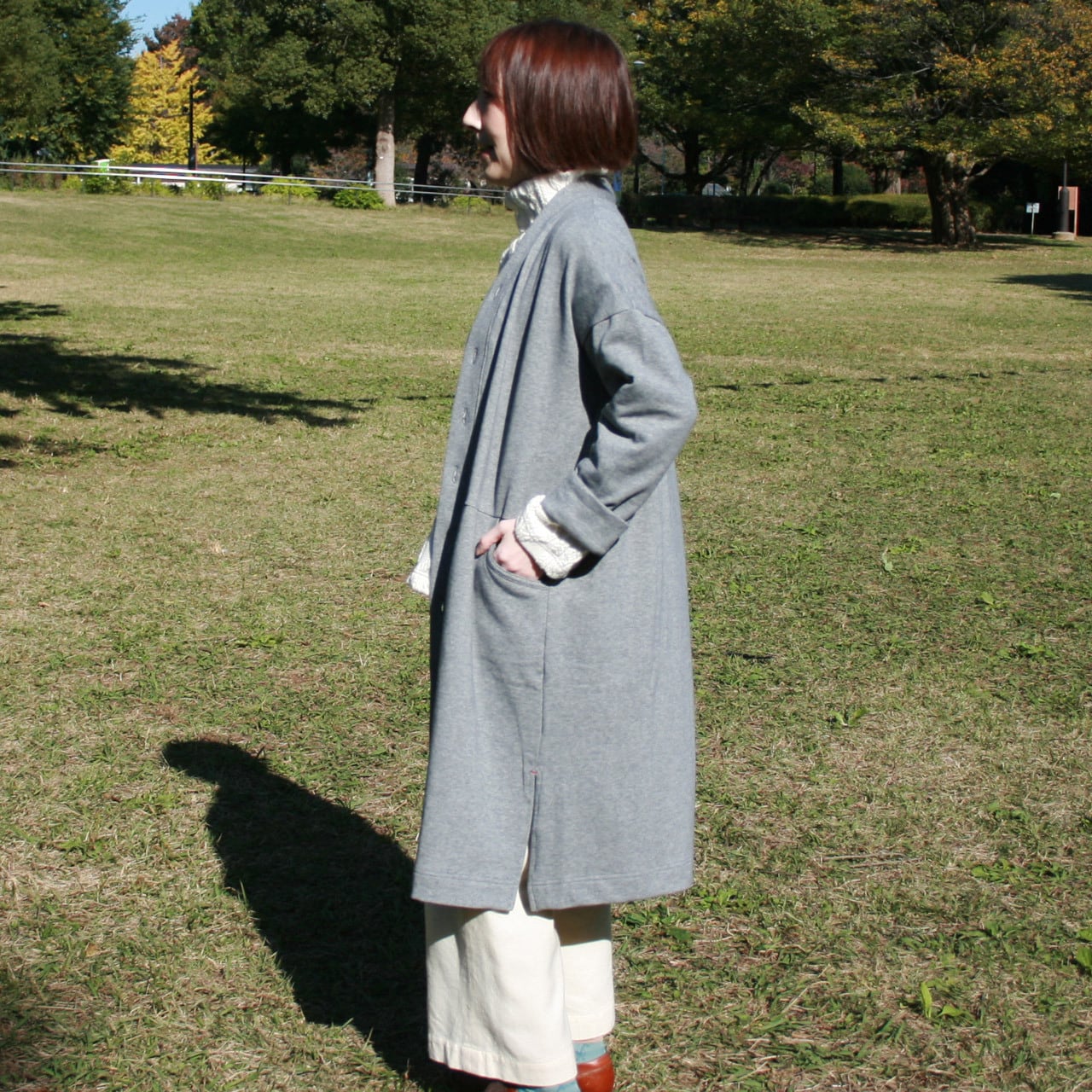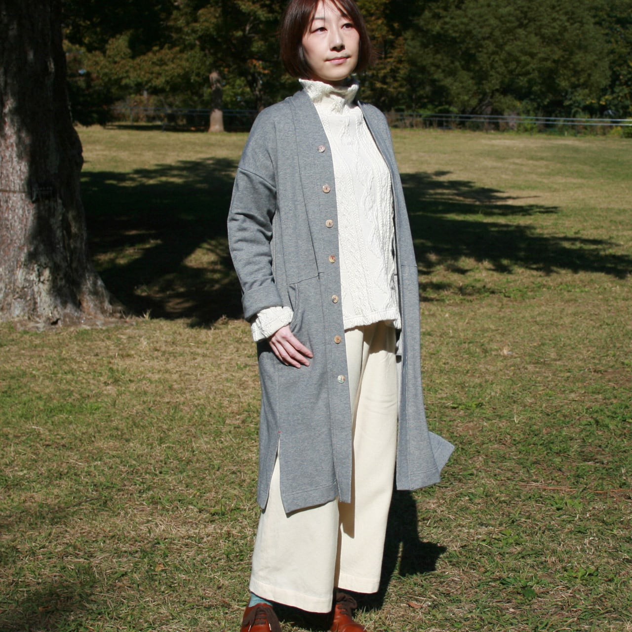 オーガニックコットンミニ裏毛で、Vネックのロングカーディを作りました。