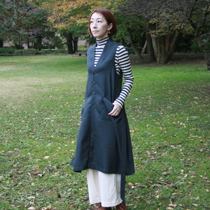 シンプルで美しいシルエットのVネックのロングジレです。