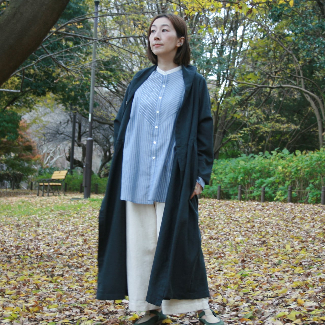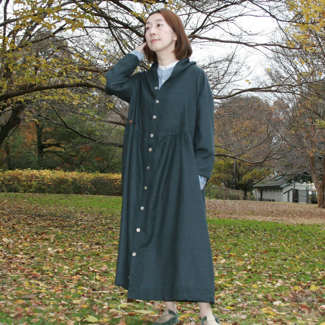前を開けて、羽織コートとしても着ていただける、ガウンコートワンピースは秋から春まで活躍いたします。