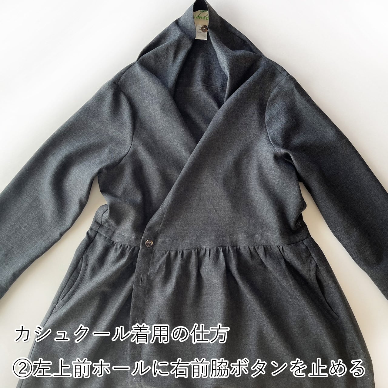 柔らかなSUPER 100’Sのウールビエラでつくった、ガウン&カシュクールのコートワンピを作りました。