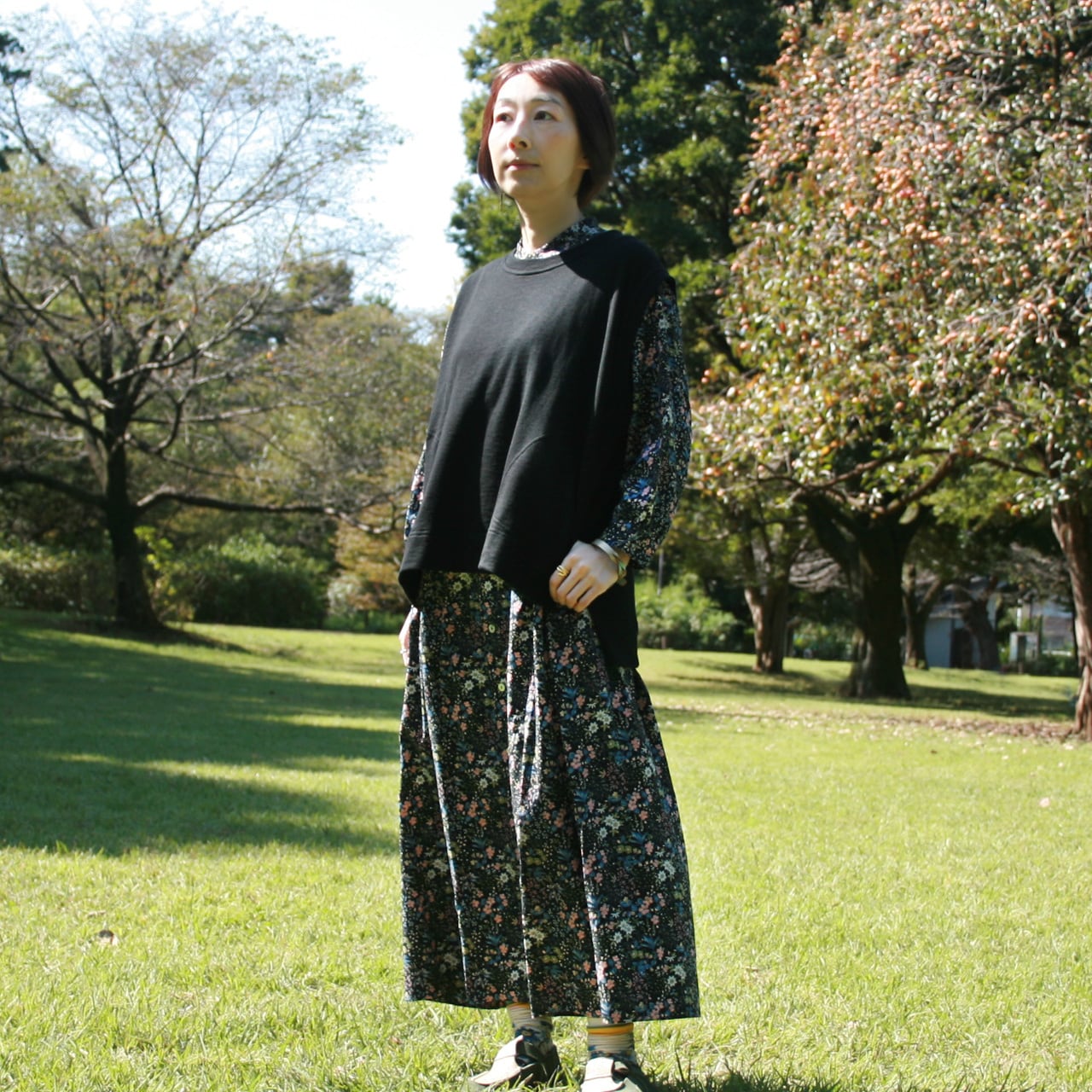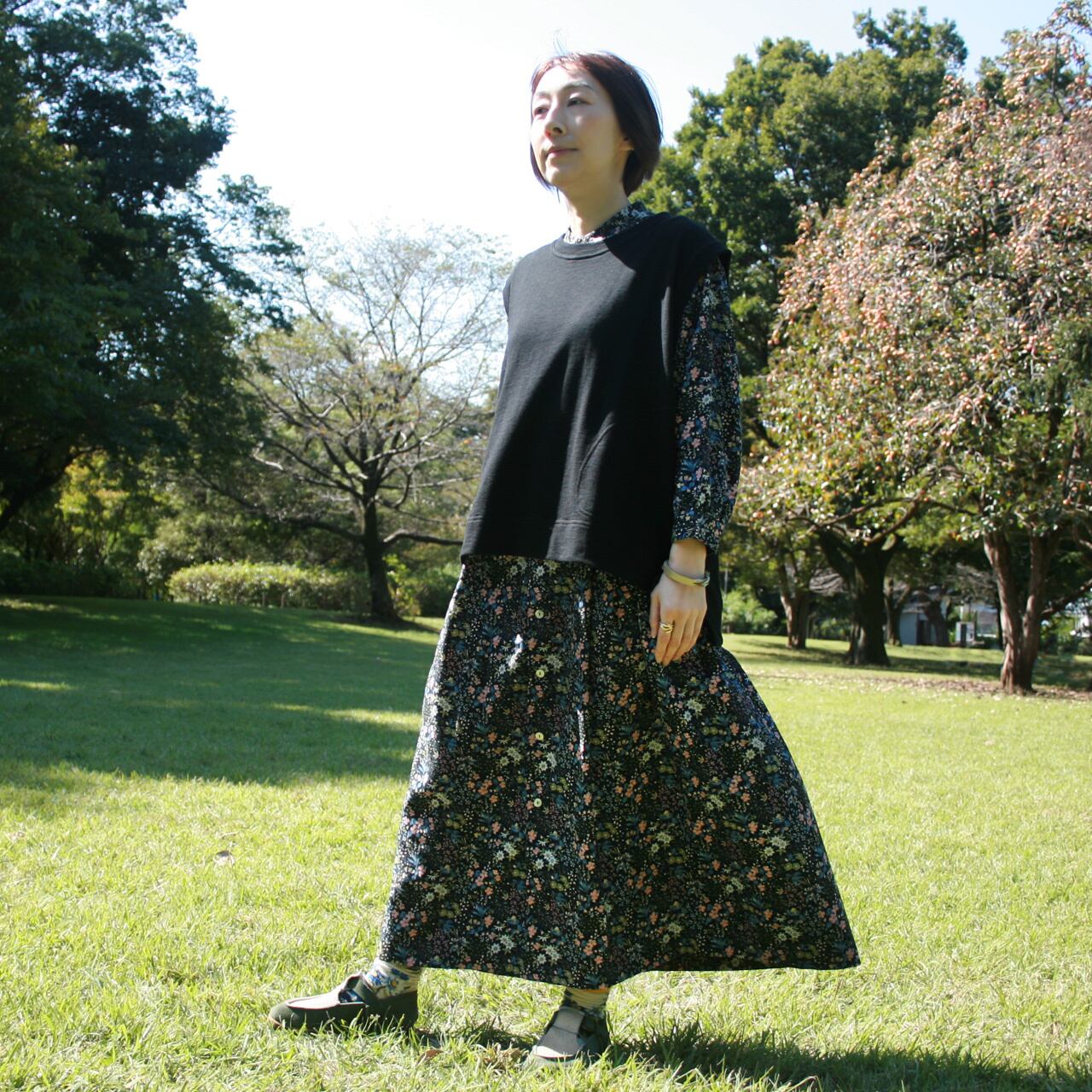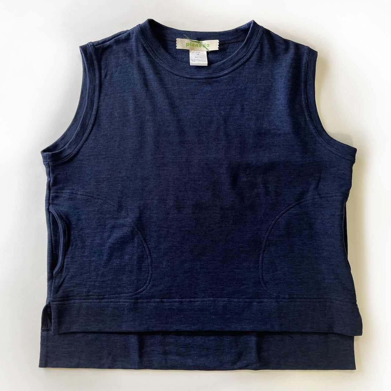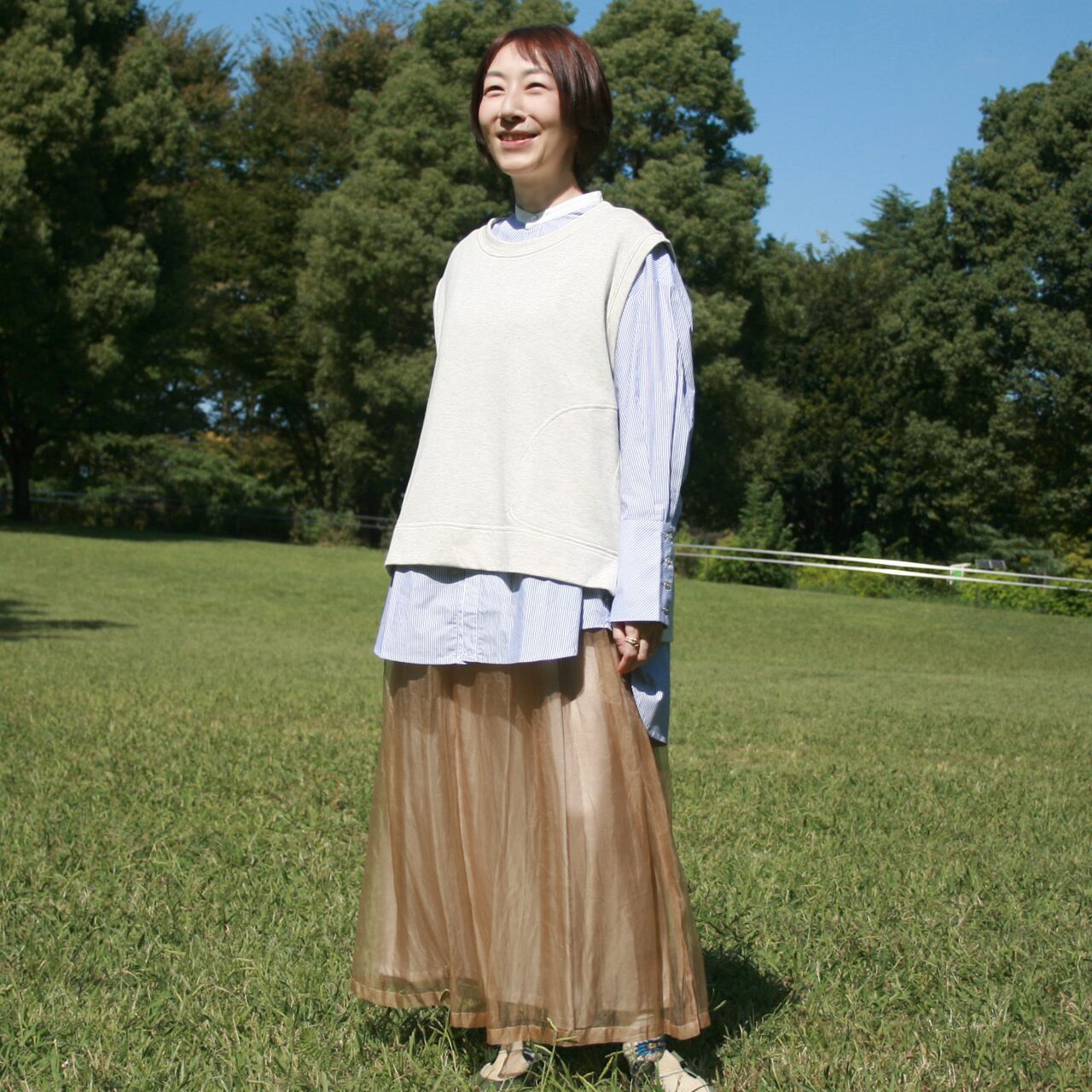 ゆったり感のあるストンとしたシルエット、中に着るアイテムを選ばないベストです。