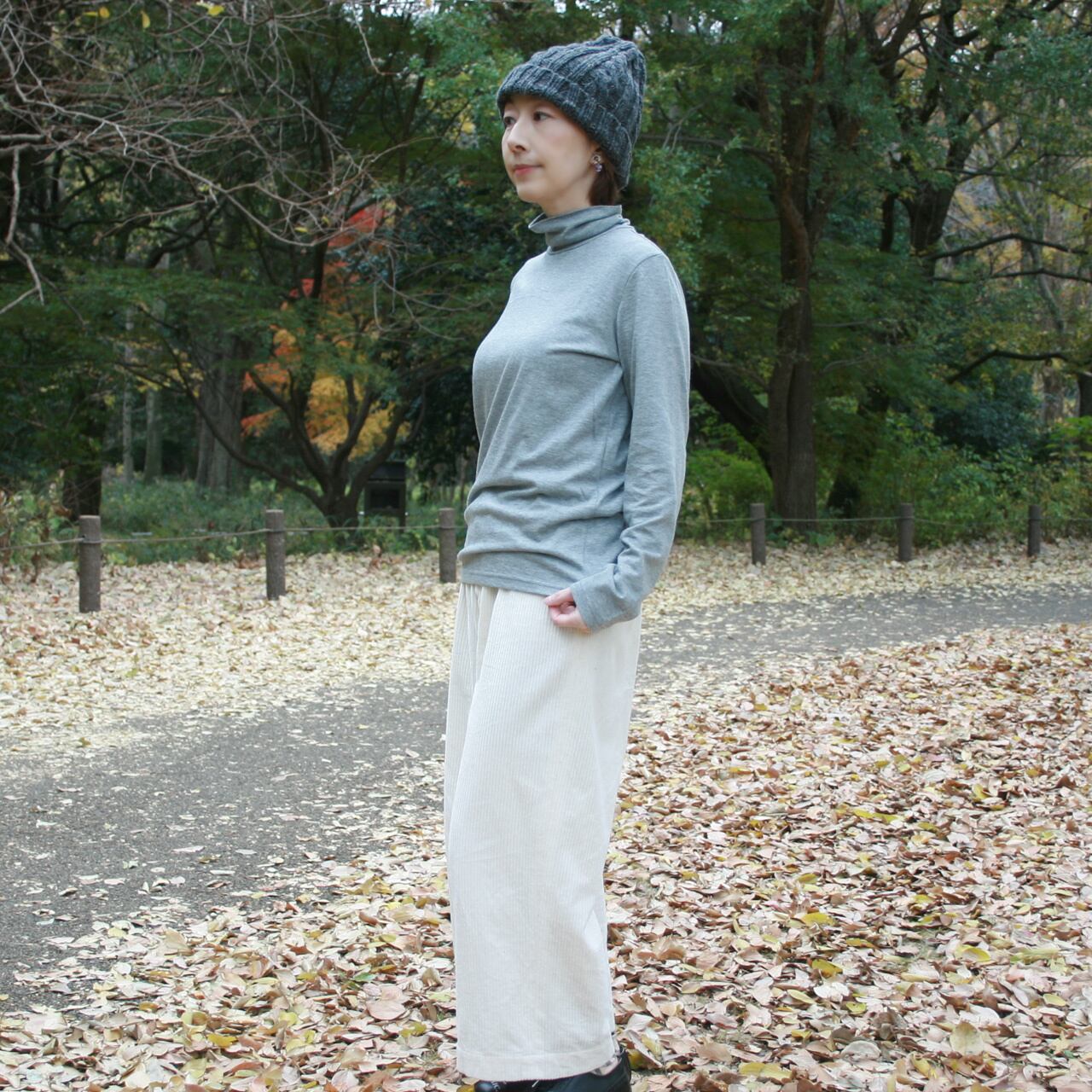 立てたまま 少しクシュクシュにして着用しても、首元が暖かで、スタイリッシュです。