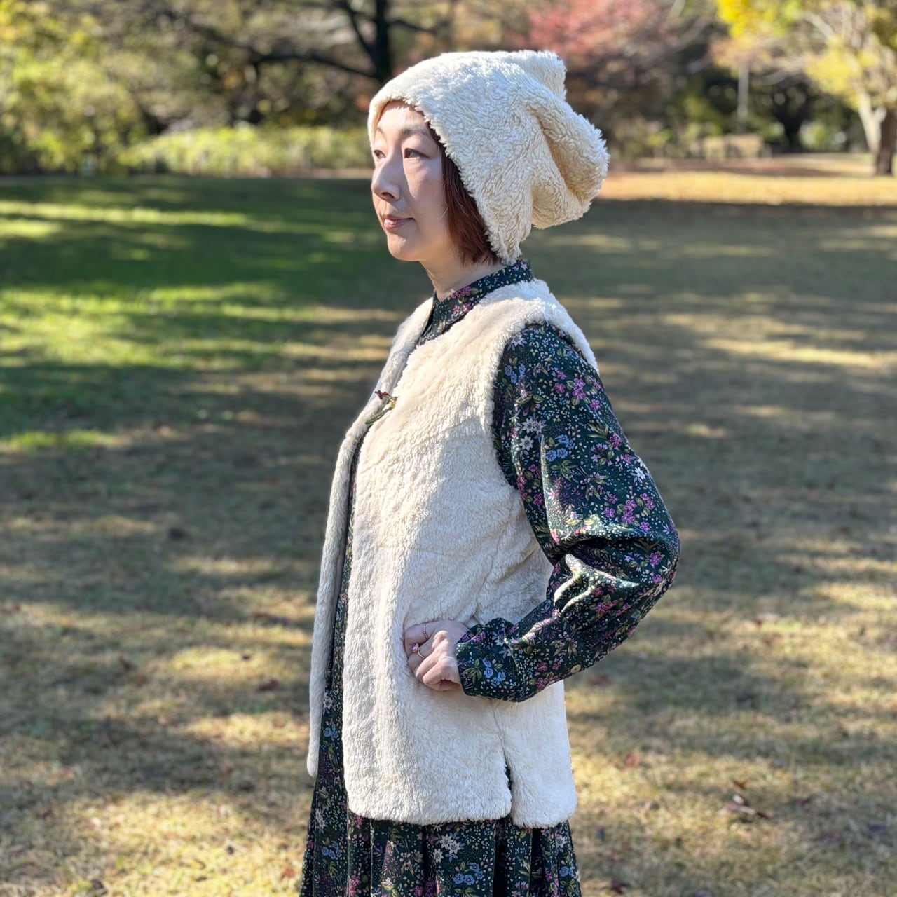 オーガニックコットンのエコ・フェイクファーで作った、肌ざわり最高なジレ